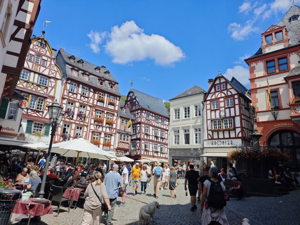 Bernkastel-Kues hat mich mit seiner malerischen Lage und der außergewöhnlich gut erhaltenen Altstadt wikrlich begeistert. Der Marktplatz ist extrem sehenswert; die Dichte an prachtvollen, liebevoll restaurierten Fachwerkhäusern habe ich in dieser Form in keiner anderen deutschen Kleinstadt gefunden. Die Lage an der Mosel und die steilen Weinberge rund um die Altstadt bilden eine wunderbare Kulisse, die den Charme der historischen Architektur verstärkt. Die Altstadt Bernkastel-Kues ist für mich einer der schönsten Orte an der Mosel. In der Hauptsaison lockt das natürlich viele Besucher an. Wenn du weniger Frequenz magst, solltest du vor den Sommerferien hierher kommen oder im Oktober.