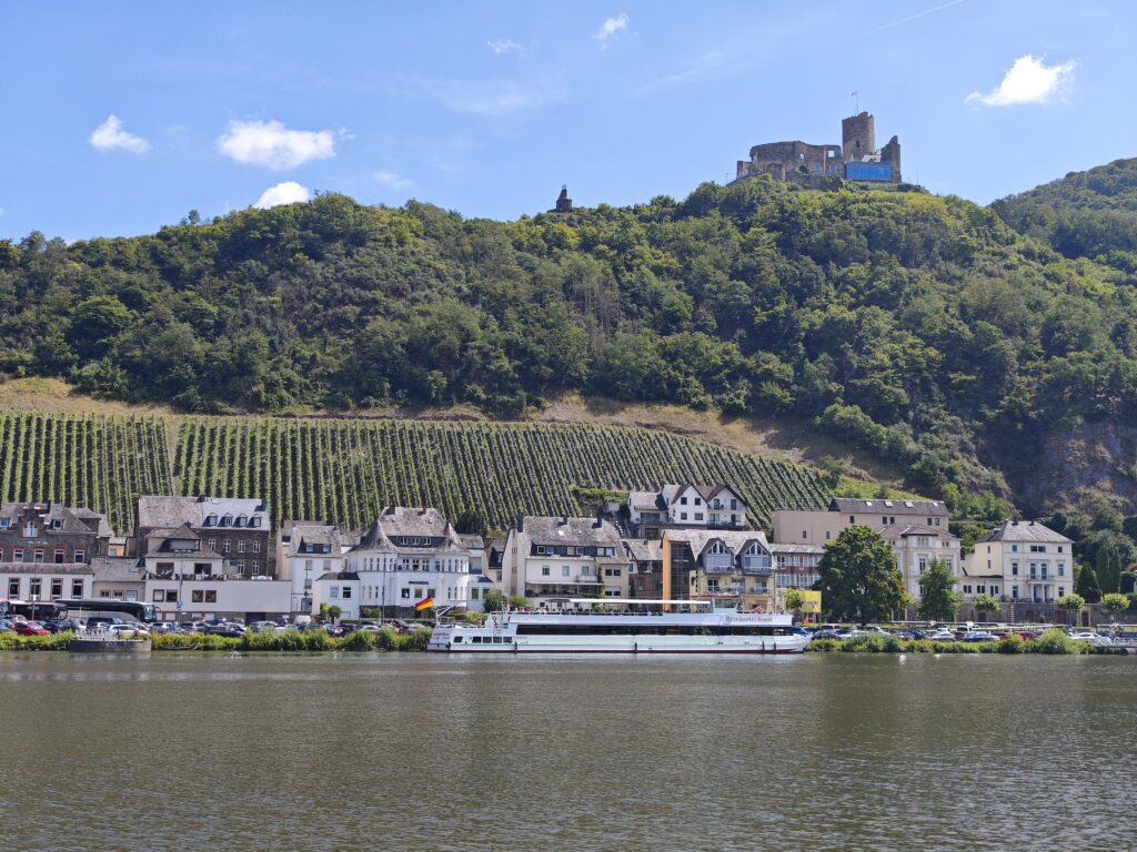 - Römisches Kastell (4. Jahrhundert): Jüngste archäologische Funde belegen, dass sich an der Stelle der heutigen Burgruine bereits im 4. Jahrhundert ein spätrömisches Kastell befand. Dieser Wehrbau, vermutlich unter dem Namen „Princastellum“, diente zur Sicherung des militärischen Nachschubs auf der Mosel an die Rheingrenze des Römischen Reiches. Seine massiven Mauern aus Quarzit zeugen von der strategischen Bedeutung dieses Ortes.